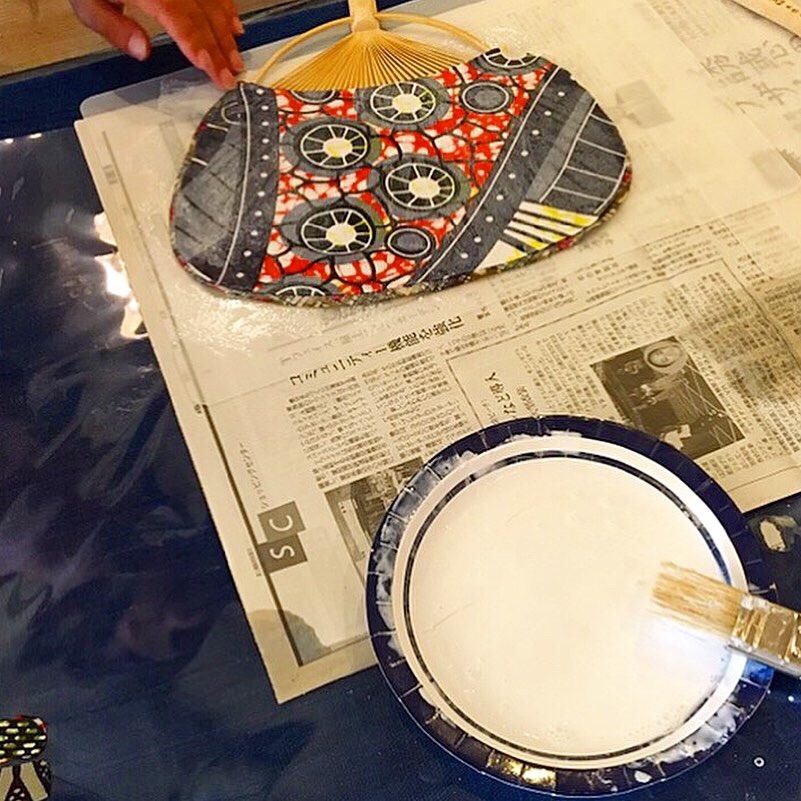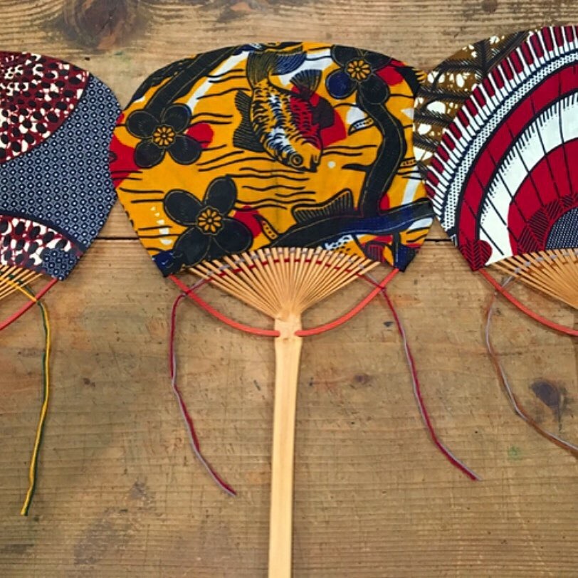 西アフリカの生地「パーニュ」を使い、オリジナルの色鮮やかなうちわを作ります。