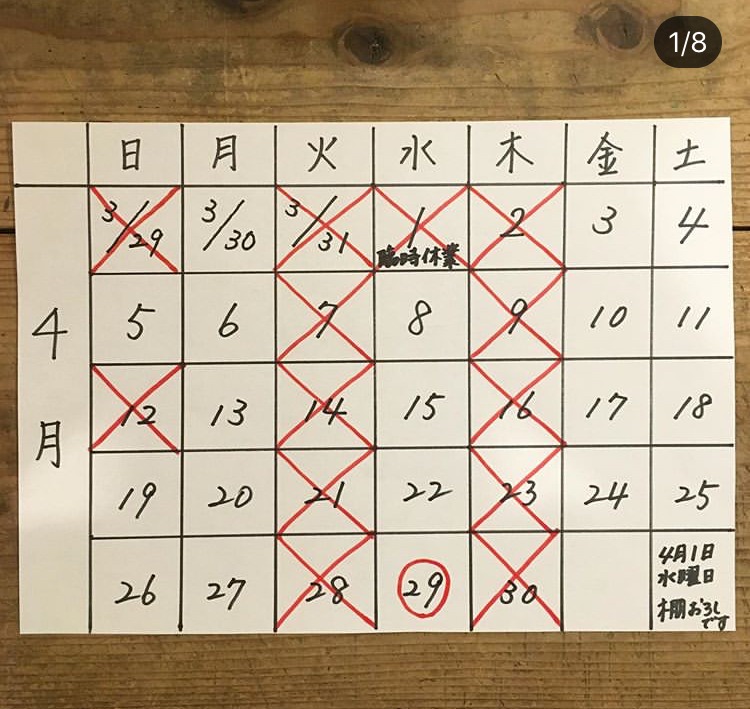 4月の営業日、お休みの