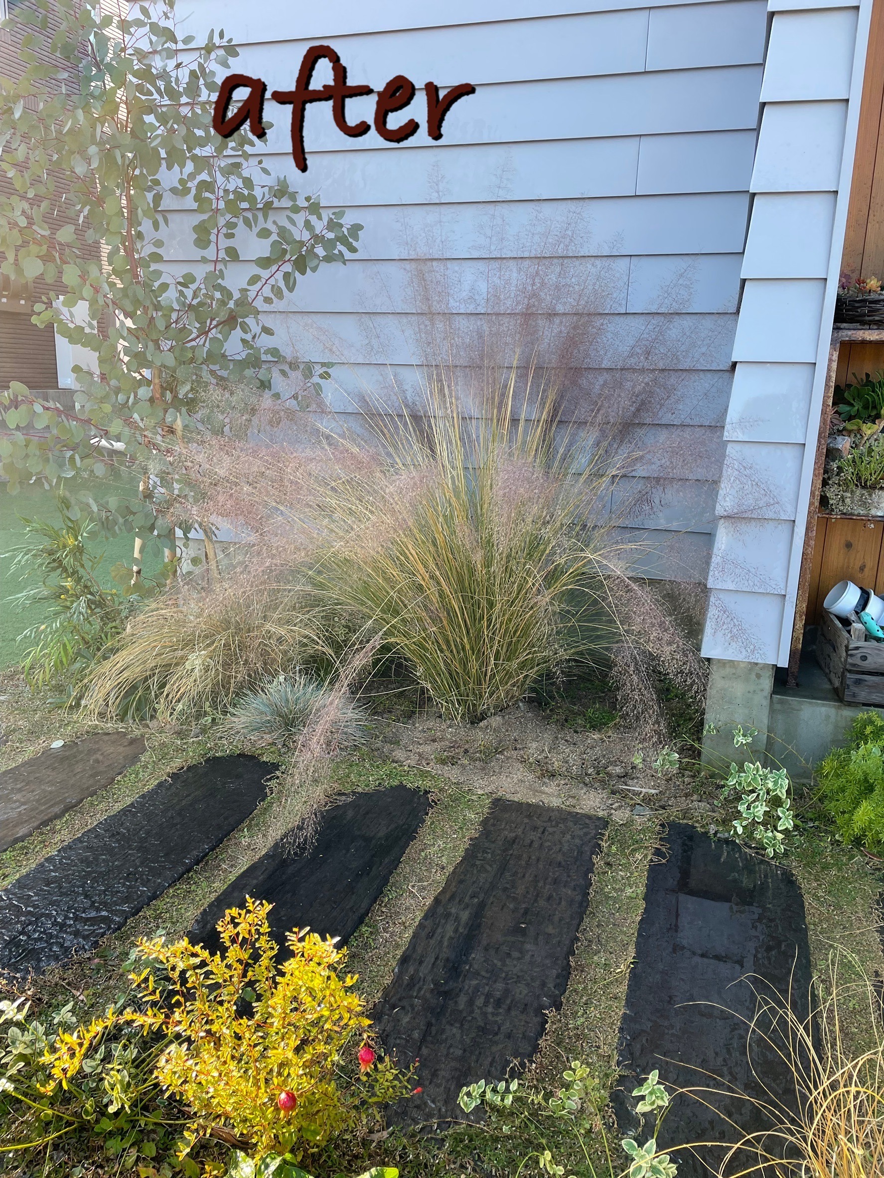 既存のお庭に少し手を入れさせて頂き、オーナメンタルグラスでインパクトを加え、お家の表情をガラリと変えさせて頂きました。