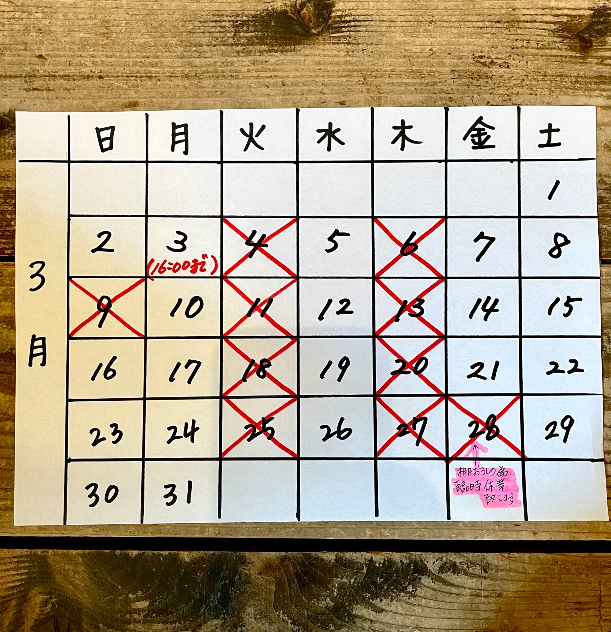 🟣3月28日(金曜日) 棚卸の為臨時休業