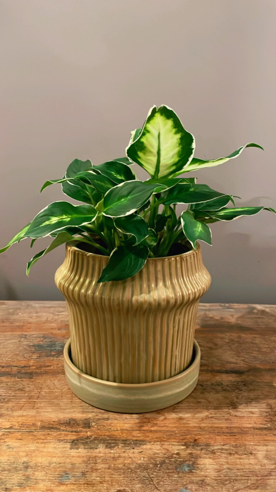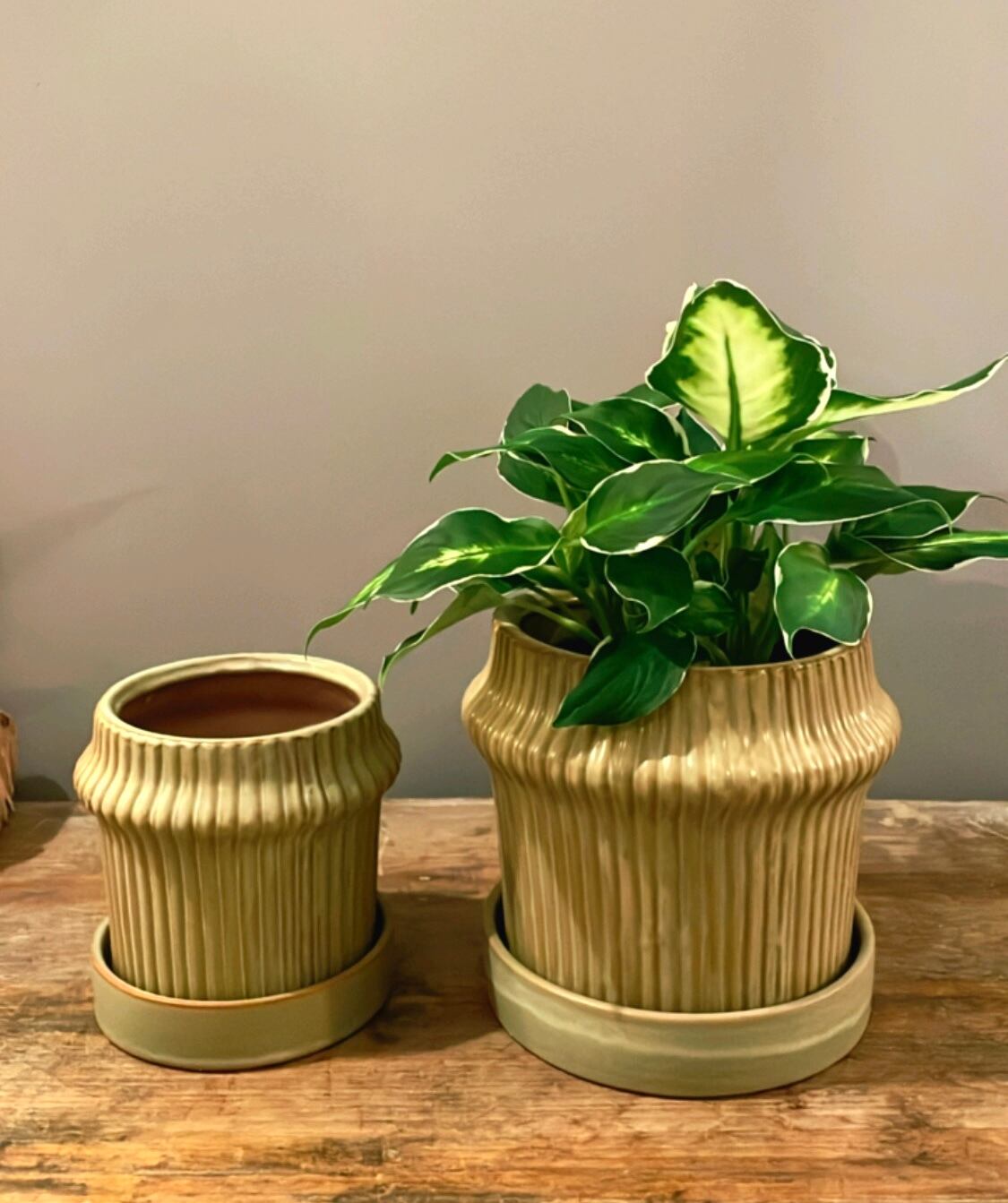 鉢のストライプ模様はさりげなく、