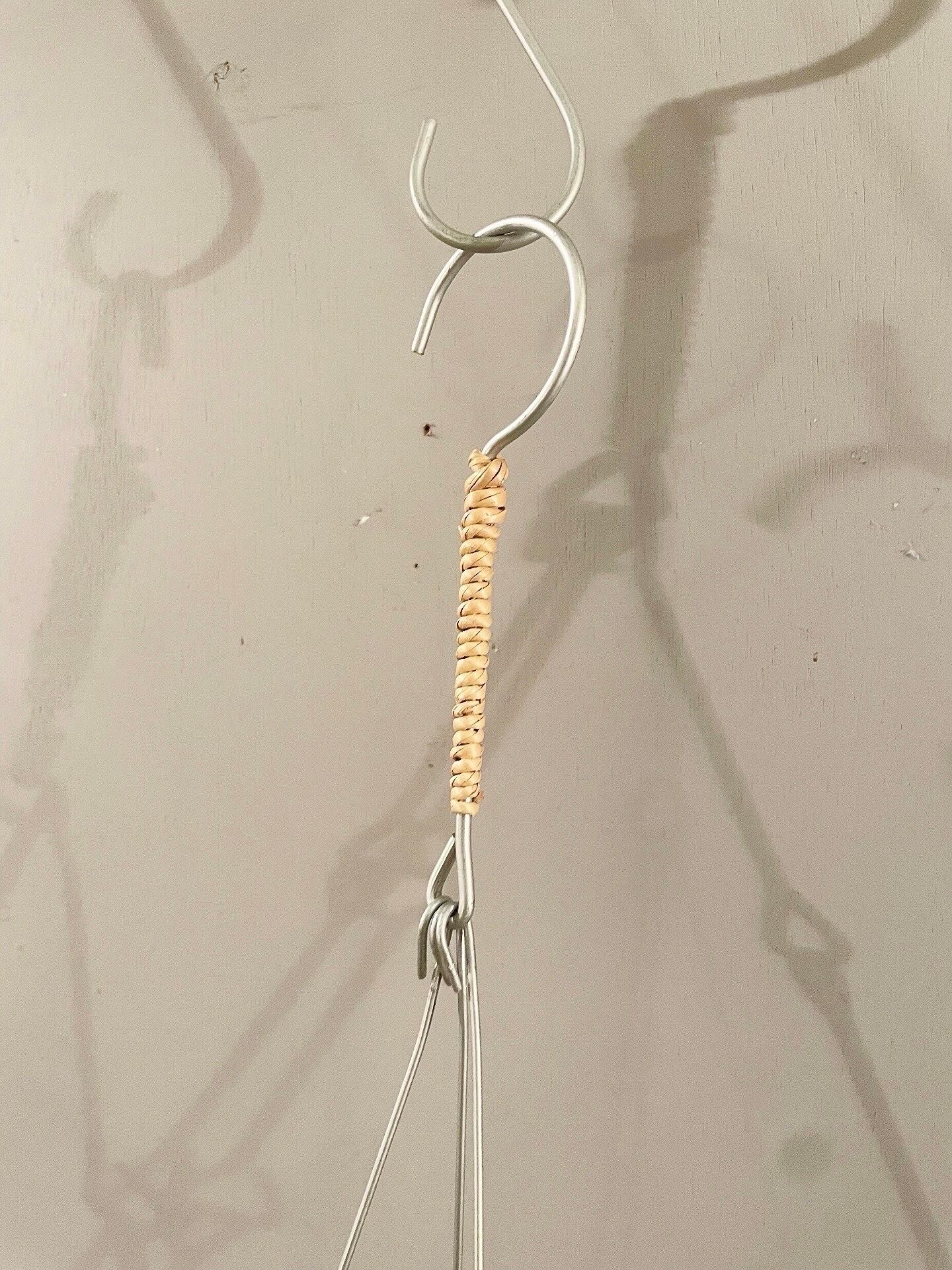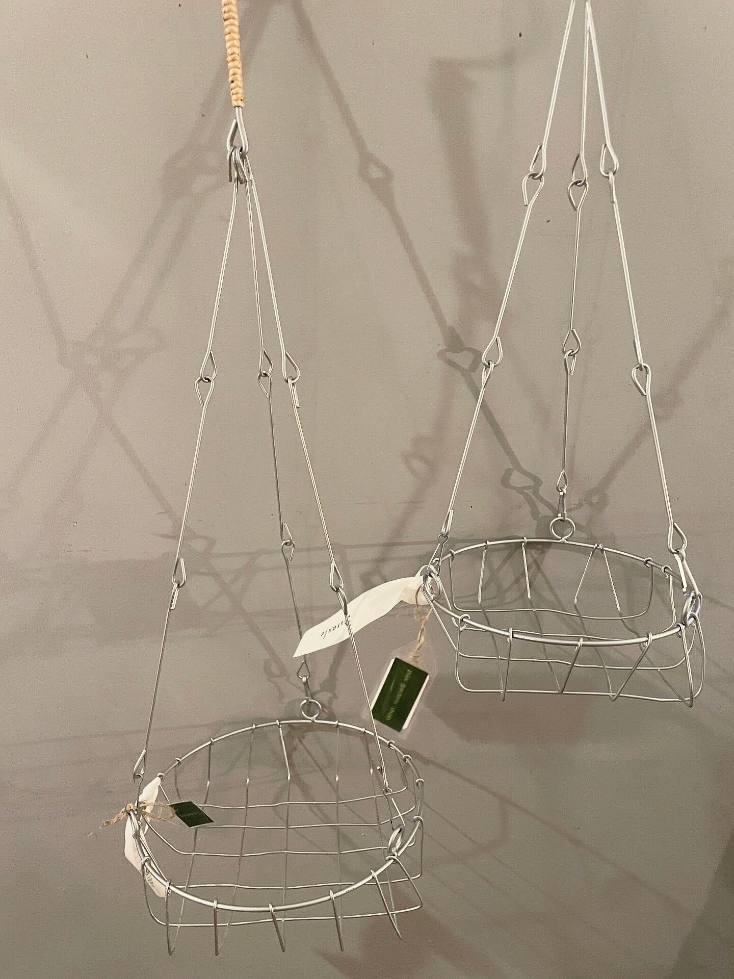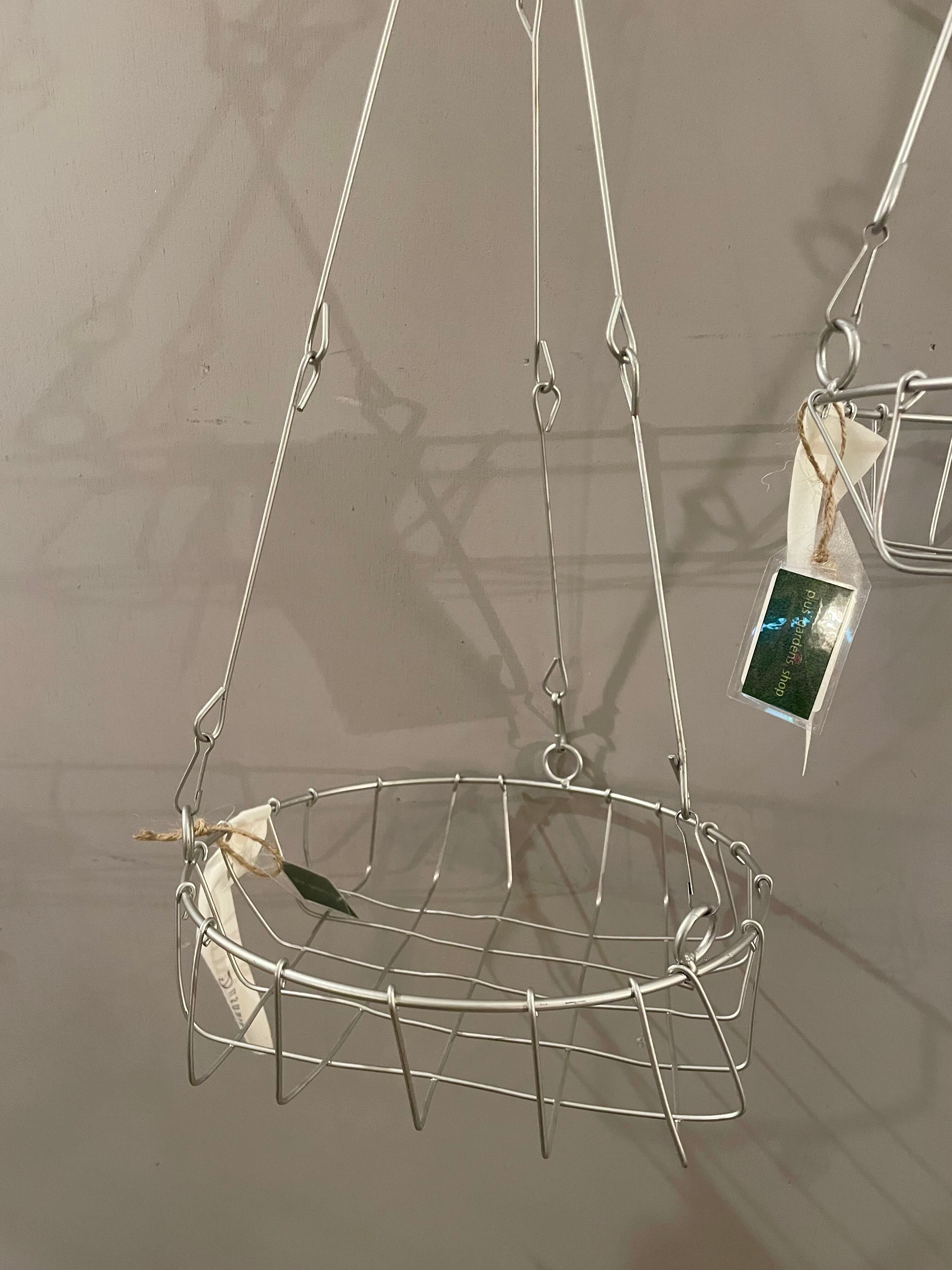 ワイヤーを使って丁寧に編まれた、ハンドメイドのハンギングローバスケット。