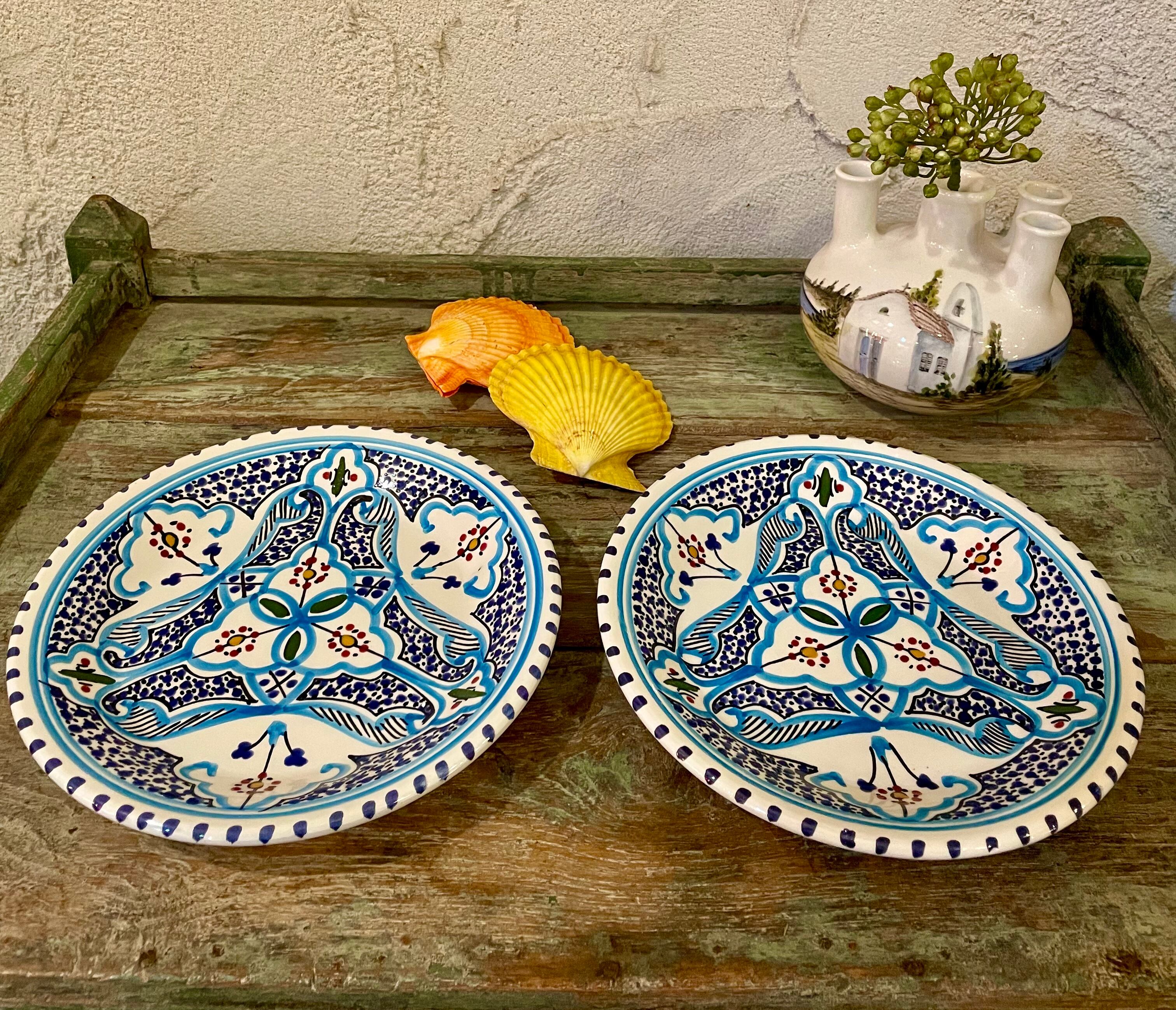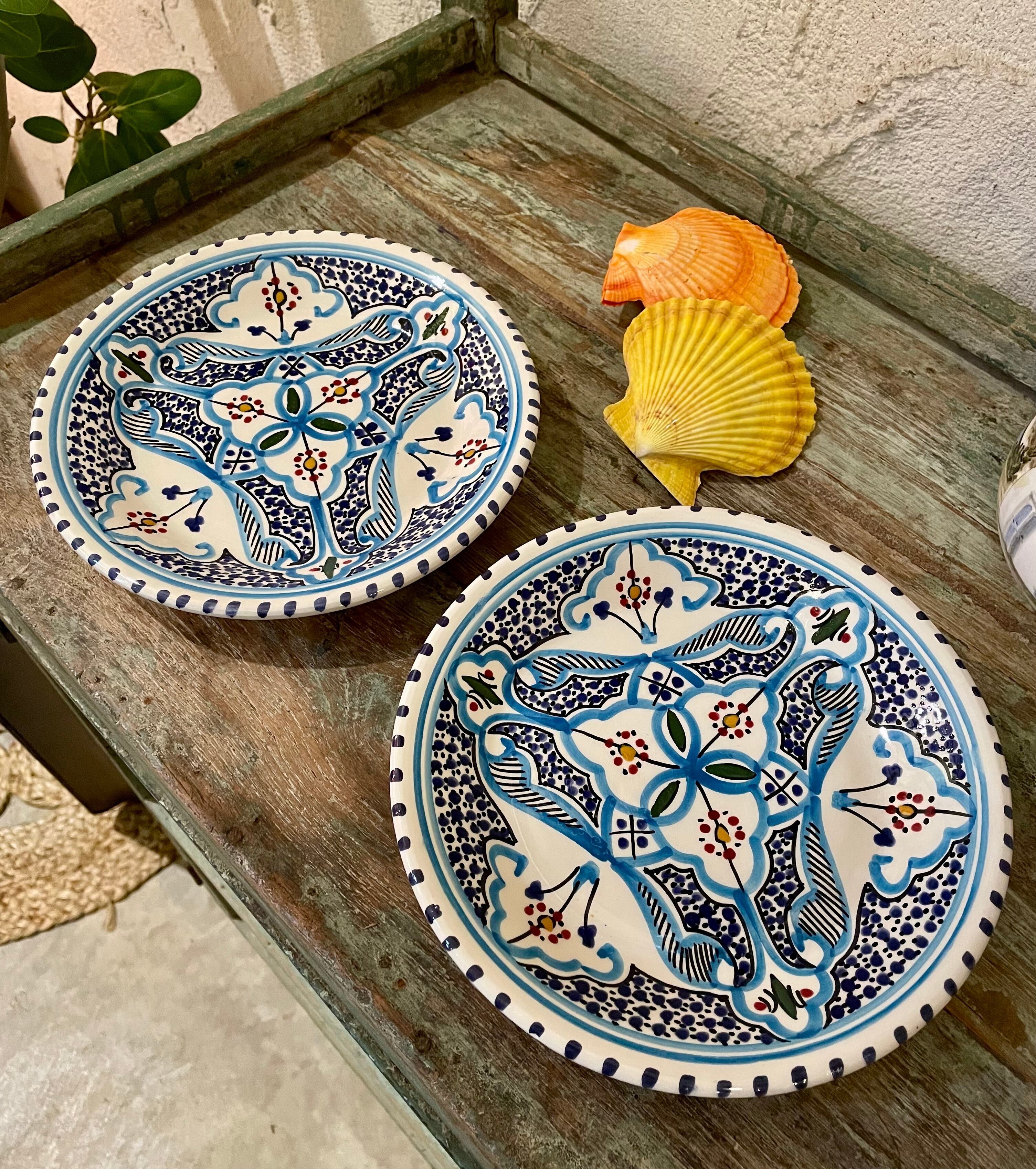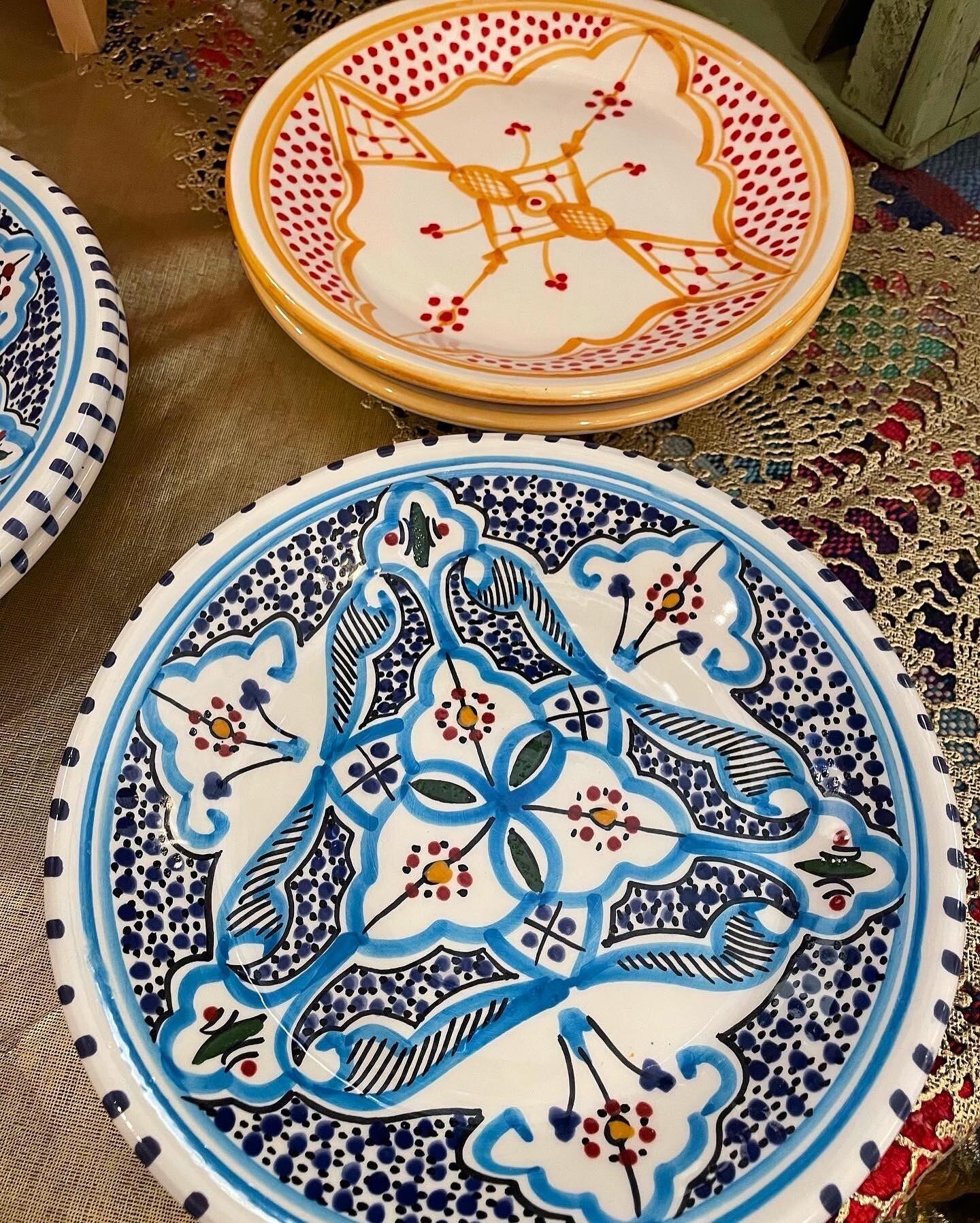 チュニジア SLAMA陶器 手描きデザート皿 Φ20cm