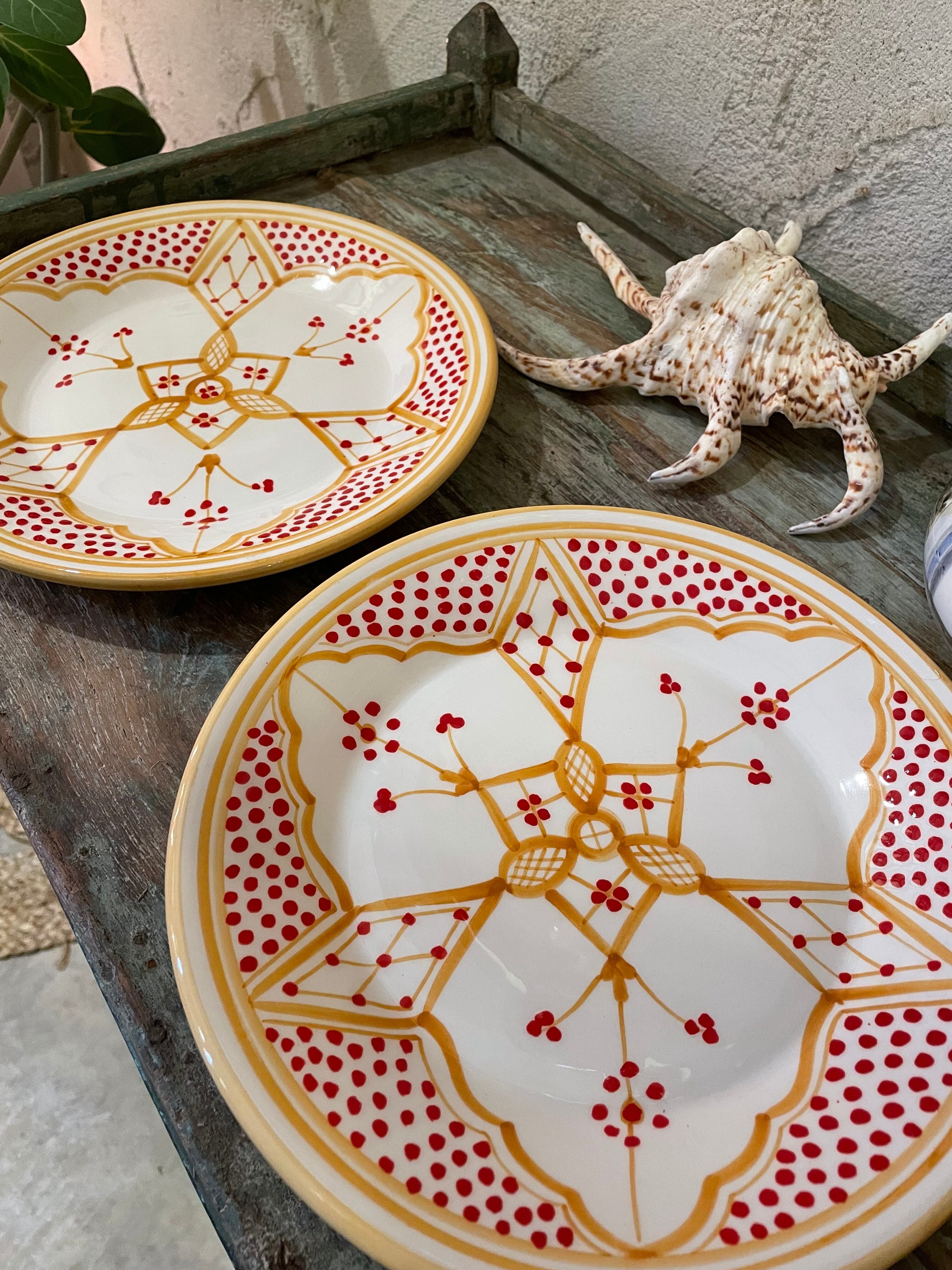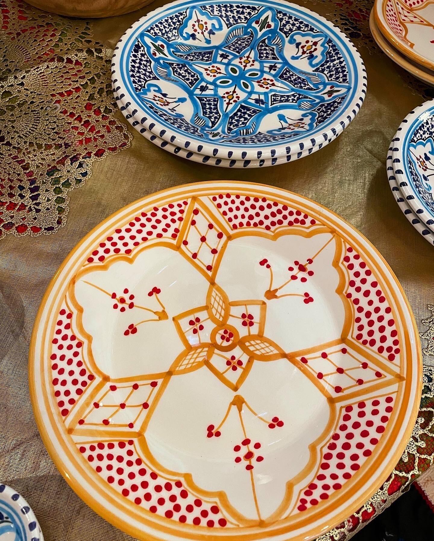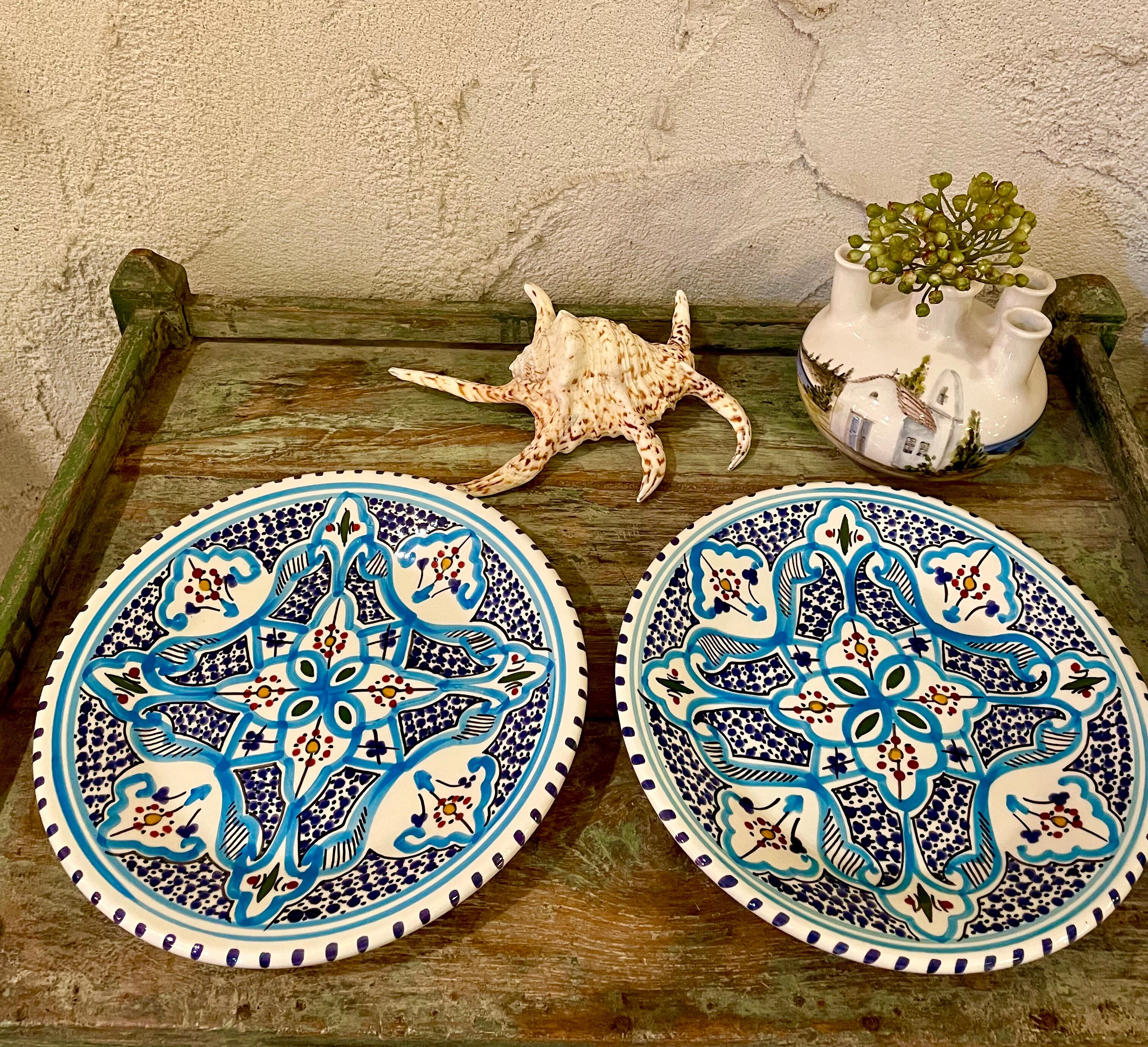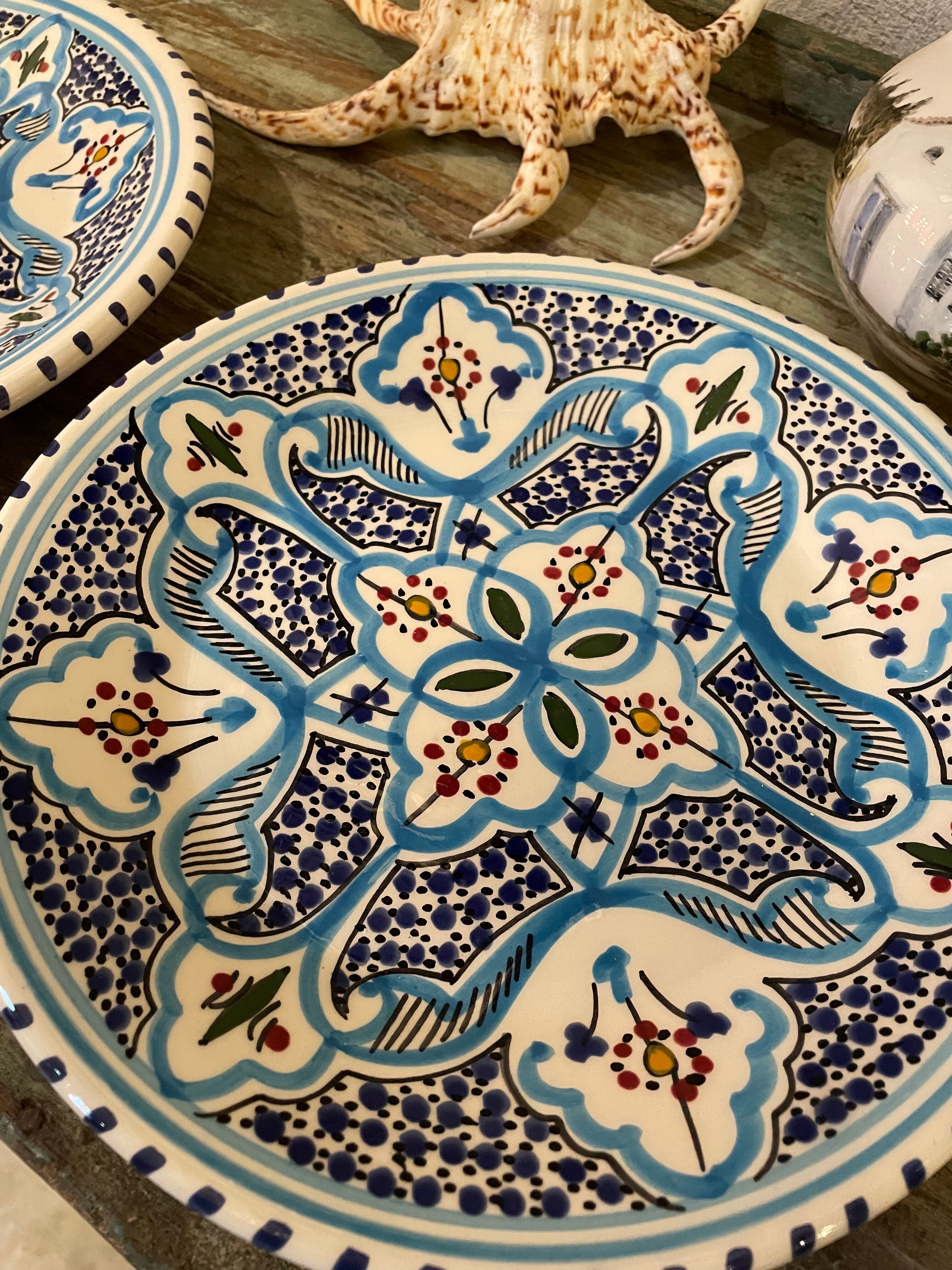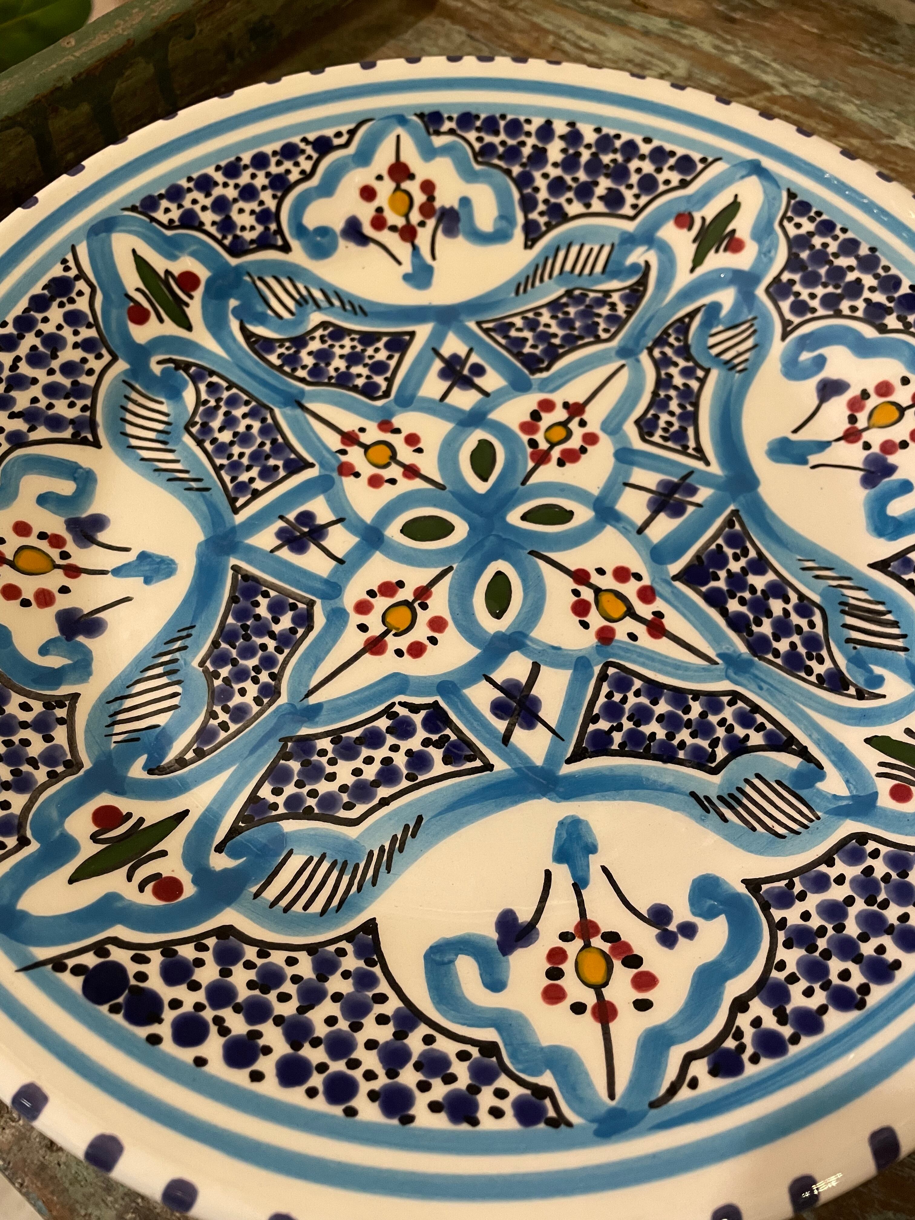 鮮やかなチュニジアンカラーで描かれたエキゾチックな柄のお皿です。