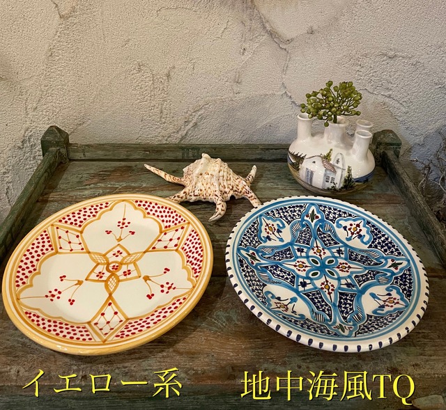 チュニジア SLAMA陶器 手描き平皿 Φ24cm