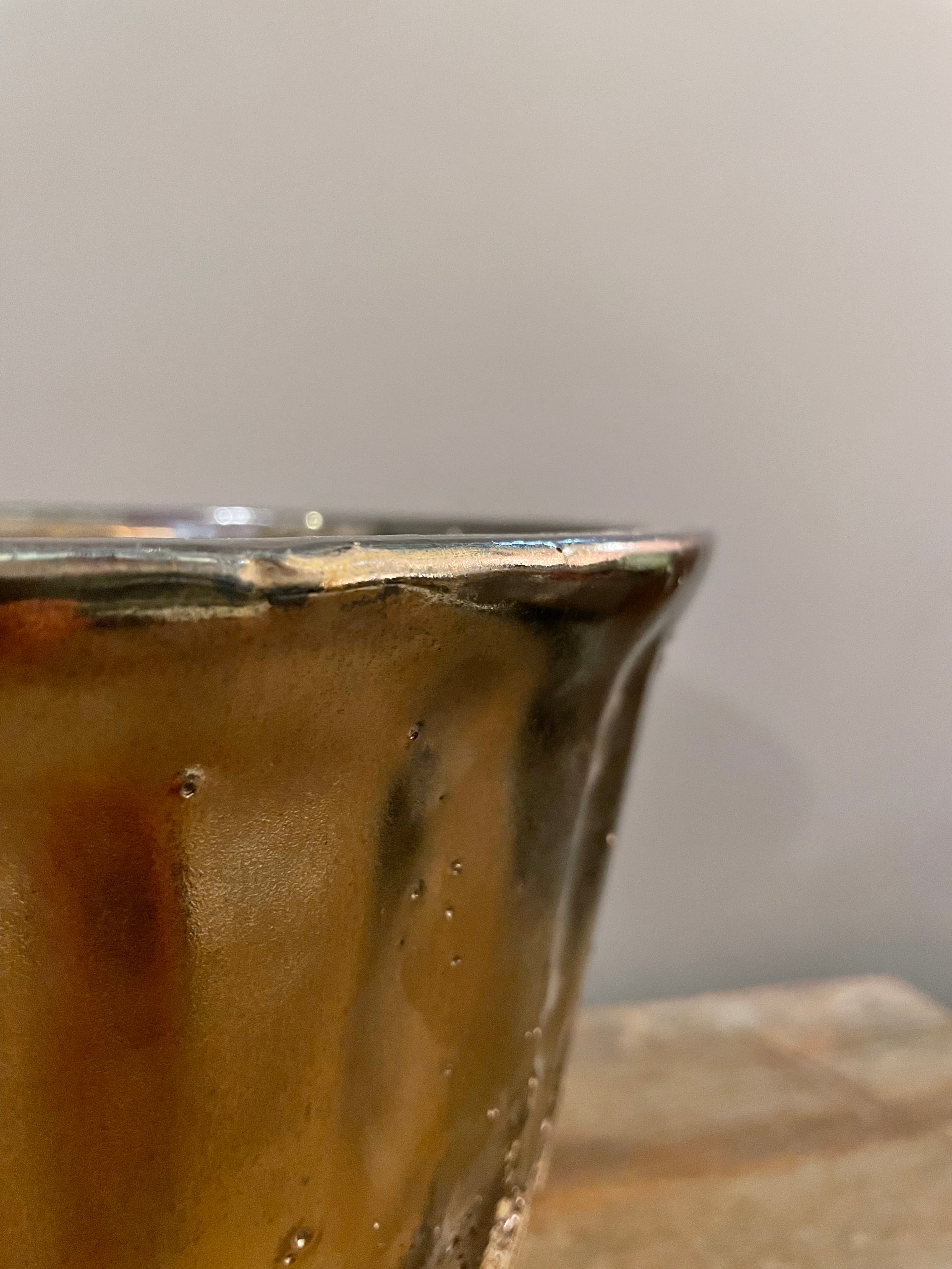 ブロンズゴールドのようなマットな釉薬が上部にかかり下部は